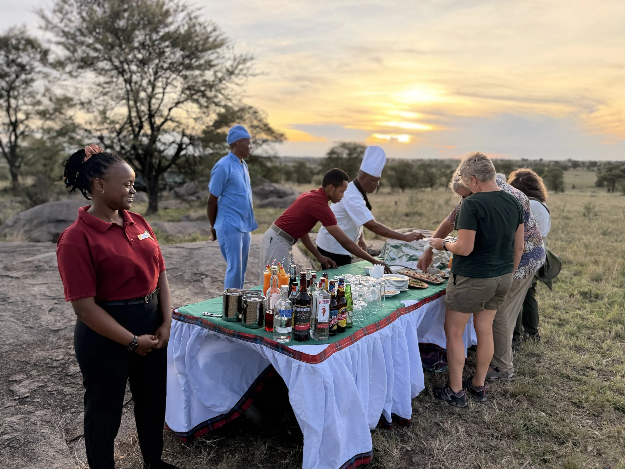 As evening settles in, return to Nyikani Luxury Tented Camp in Central Serengeti, where a beautifully prepared dinner awaits, prepared under the watchful eye of a Michelin rated Chef.